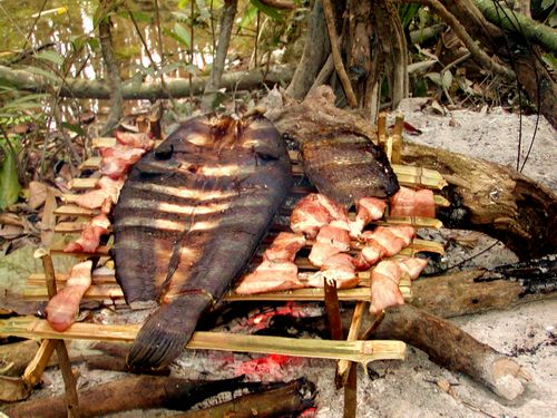 Breakfast, packing the tent, go to the boat back to Smiley Lakehouse